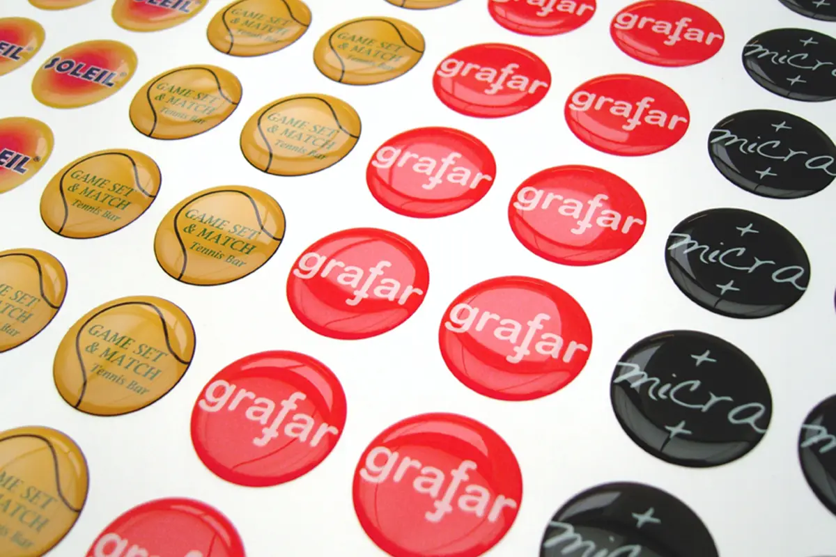 Wilt u dat uw stickers er nog meer uitspringen? Kies dan voor onze domingstickers. Deze full color geprinte stickers worden voorzien van een bolle UV-bestendige harslaag, waardoor er een diepte-effect ontstaat met een zeer luxe uitstraling.