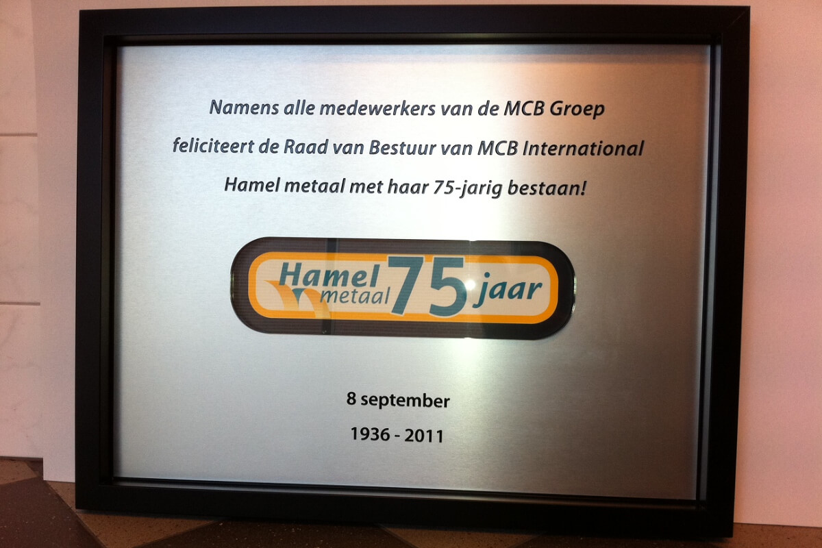 Graveren biedt voordelen als belettering, omdat het mogelijk is om zelfs erg kleine teksten te produceren en de gravure permanent is. In het begin was het nog handwerk, maar door het vroeg adopteren van productieautomatisering konden we al snel onze klanten laten profiteren van seriematig maatwerk met een uiterst hoge precisie. Ons machinepark kan moeiteloos teksten en logo's van 2 mm tot zelfs 2 meter hoog verwerken en zeer nauwkeurig graveren. Naast graveren bieden wij ook lasergraveren en sublimeren op metaal aan.